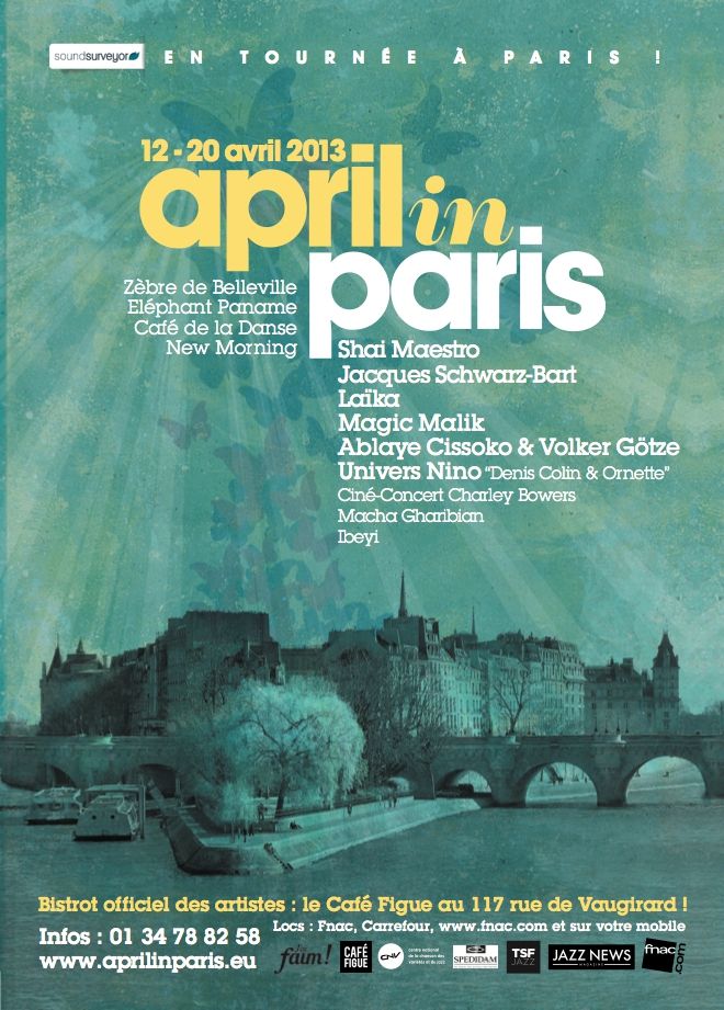 april in parisBrother Jacques réunit autour de la chanteuse vaudou haïtienne Moonlight Benjamin et du percussioniste « habité » Claude Saturne, une équipe rodée avec Grégory Privat (piano), Stéphane Kerecki (contrebasse), Sonny Troupé (batterie) et le trompettiste Alex Tassel.