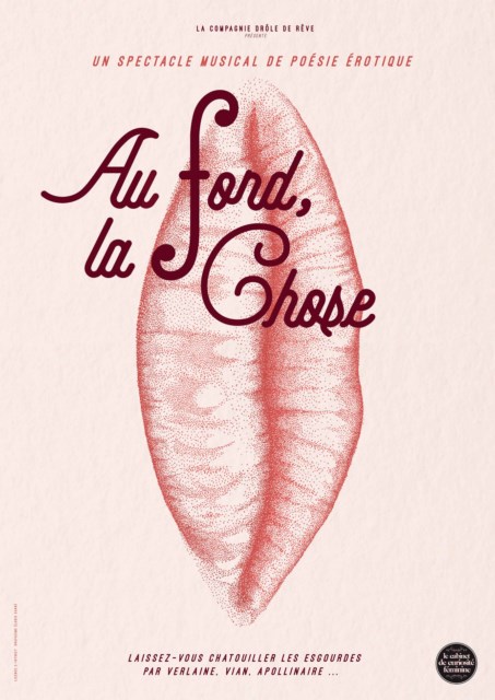 au fond de la chose premiere partie QB visuelA4-webBD (3)au fond de la chose premiere partie QB visuelA4-webBD (3) [640x480]Première Partie: Invitée par le Quartet Buccal, la Cie Drôle de Rêve présente un extrait de « Au fond, la Chose », un spectacle musical de poésie érotique. Lola Malique et Cécile Martin vous invitent à un voyage sensuel où le désir sera le maître mot. De la chose, il sera question, nécessairement. Le désir, celui du corps, et si nous l’avions perdu ? Elles vous donneront les clefs de sa reconquête. Leurs armes ? Le violoncelle et la poésie. Un cocktail détonnant pour vos sens. Ouvrez grand vos oreilles : il se pourrait que Boris Vian croise Ligeti, et que Verlaine rencontre Brassens, ou l’inverse. http://droledereve.wix.com/aufondlachose